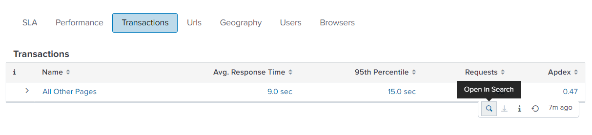 Afterwards you can hover over the table/chart and select the small search icon to open the search in a new tab: