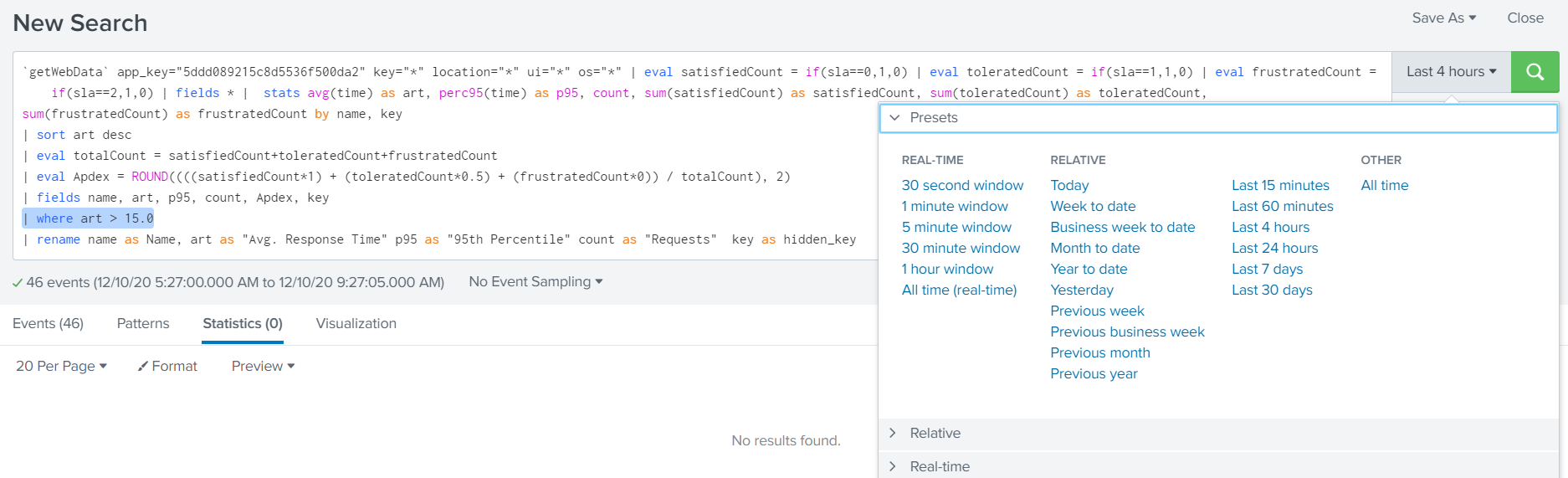 You can then add the where filter to limit on a field, in this example "Avg. Response Time" called art:
