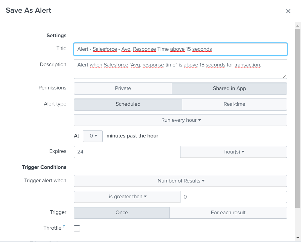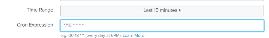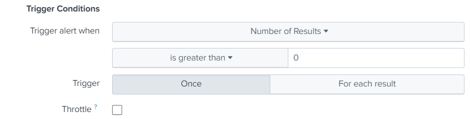 The alert will trigger based on results found and the time range selected: