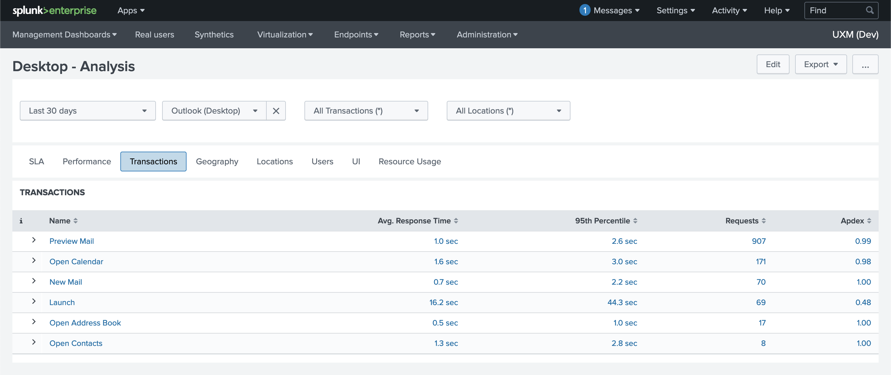 When a user triggers an event that it’s being monitored, like Open Calendar in Outlook, the information is stored and accessible through Lookups for use and display in dashboards.