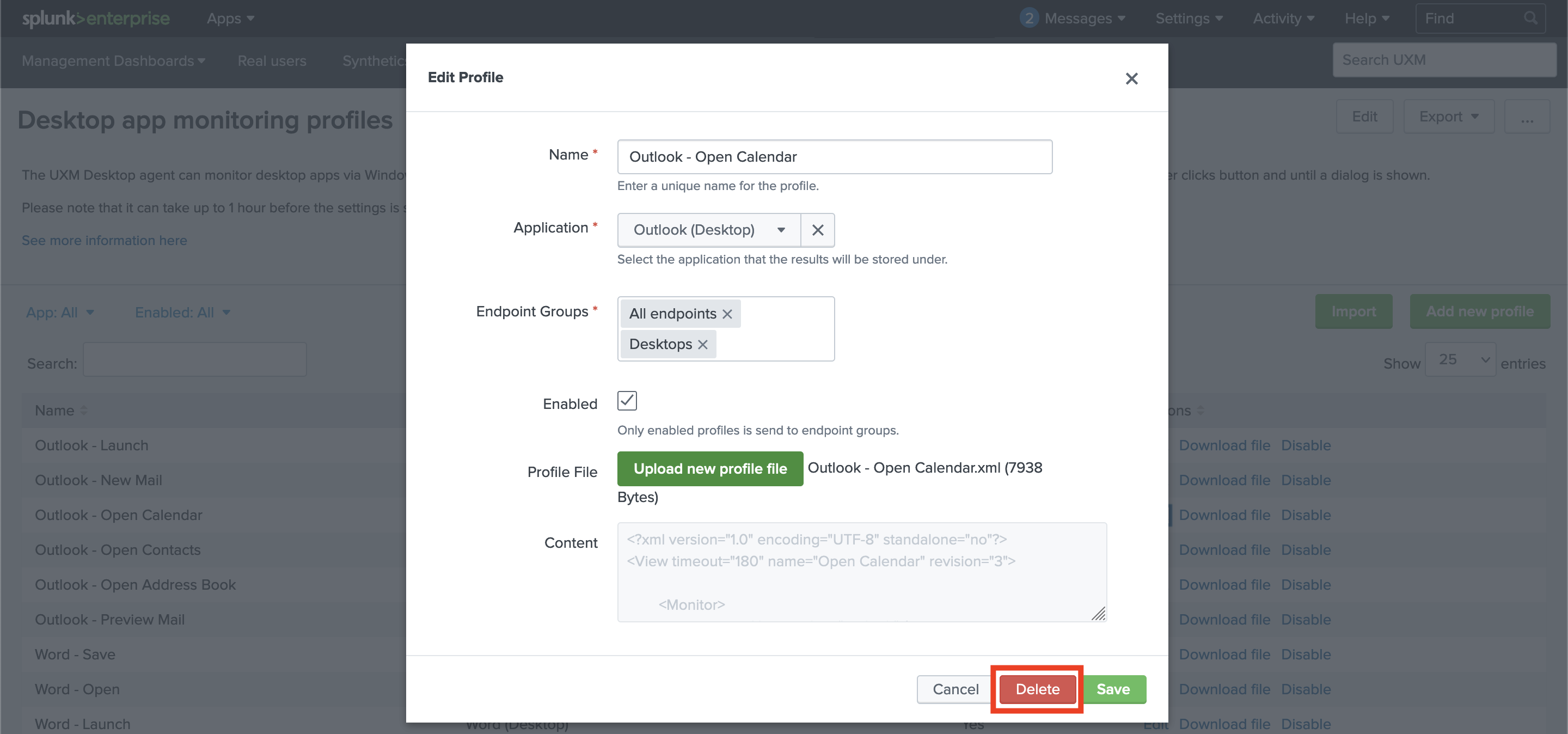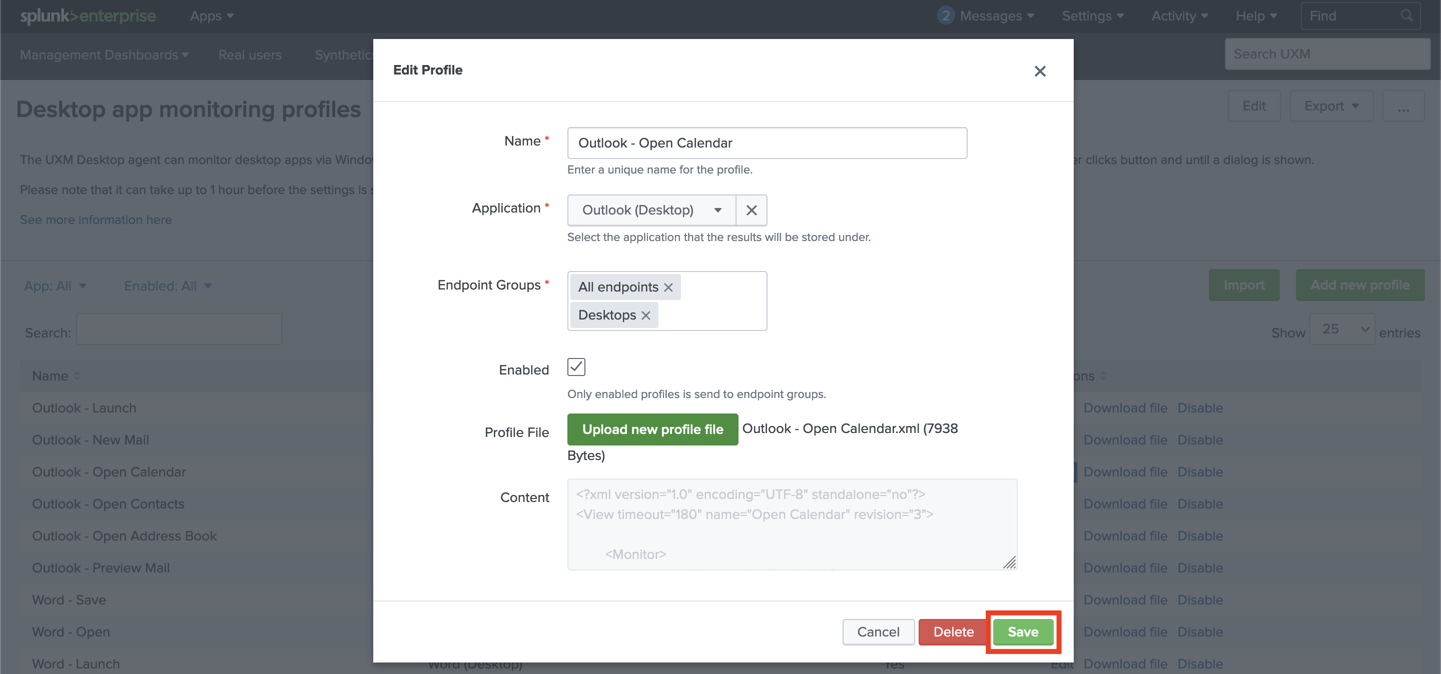 The Desktop Profiles are configurations used by the UXM Desktop Agent for monitoring specific desktop apps like Word, Excel, or Outlook, using an XML file which contains the guidelines of the event that will be tracked.
