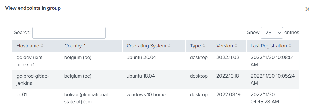 You can view the agents (endpoints) that matched and are placed into each group by clicking “View endpoints in group”.