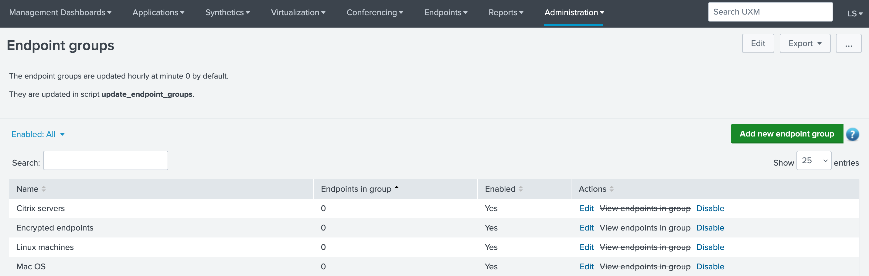 Using the dropdown menu, navigate to Administration -> UXM Desktop Agent -> Endpoint Groups.