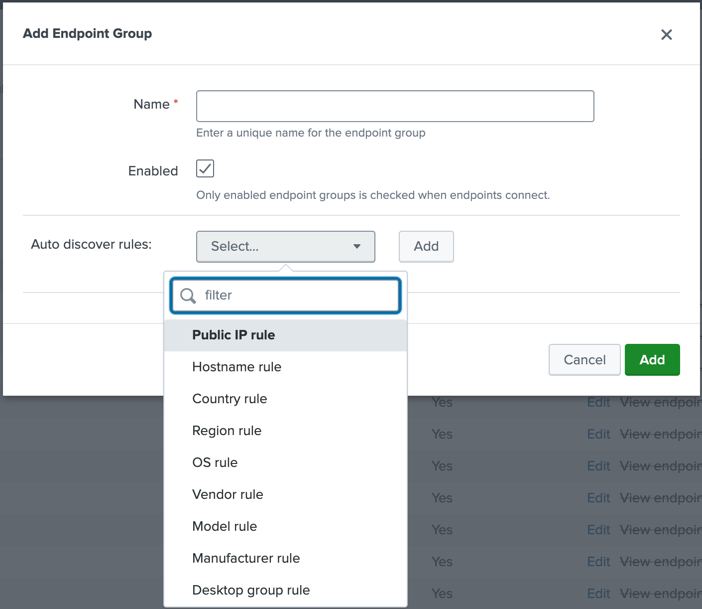 Adding Rules to Endpoint Group