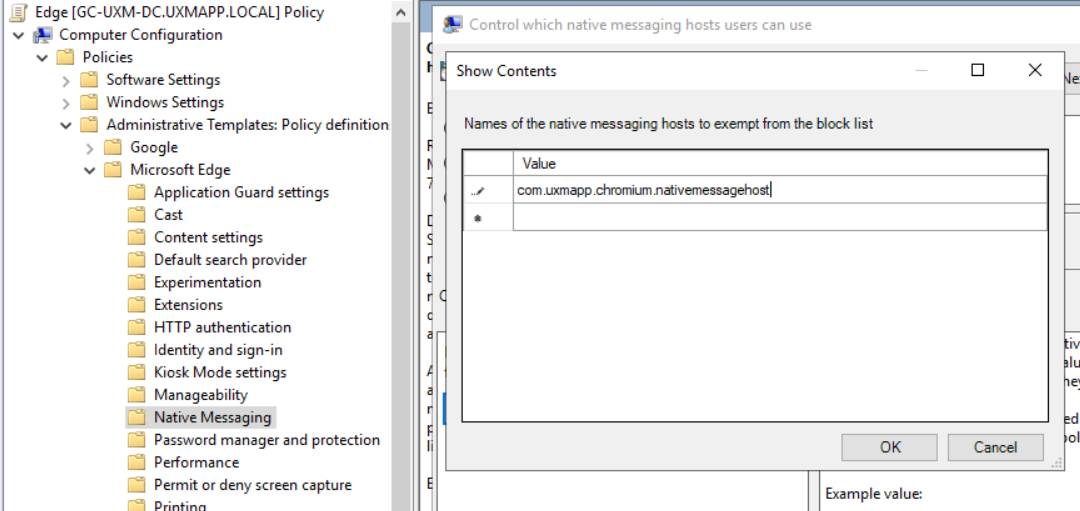 Value to add: com.uxmapp.chromium.nativemessagehost