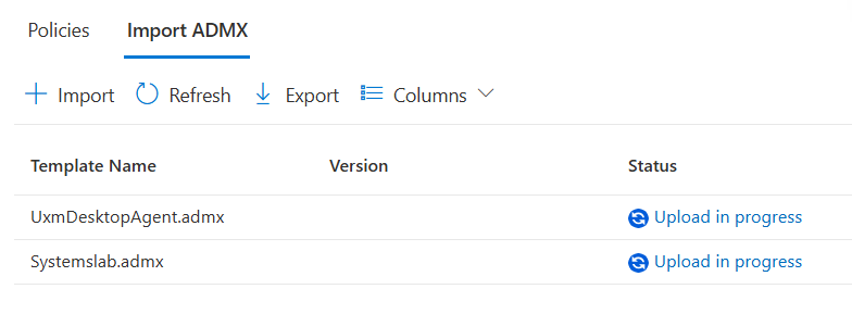 Click Import button again and select the admx/UxmDesktopAgent.admx and admx/en-US/UxmDesktopAgent.adml file from the unzipped Group Policy Templates.