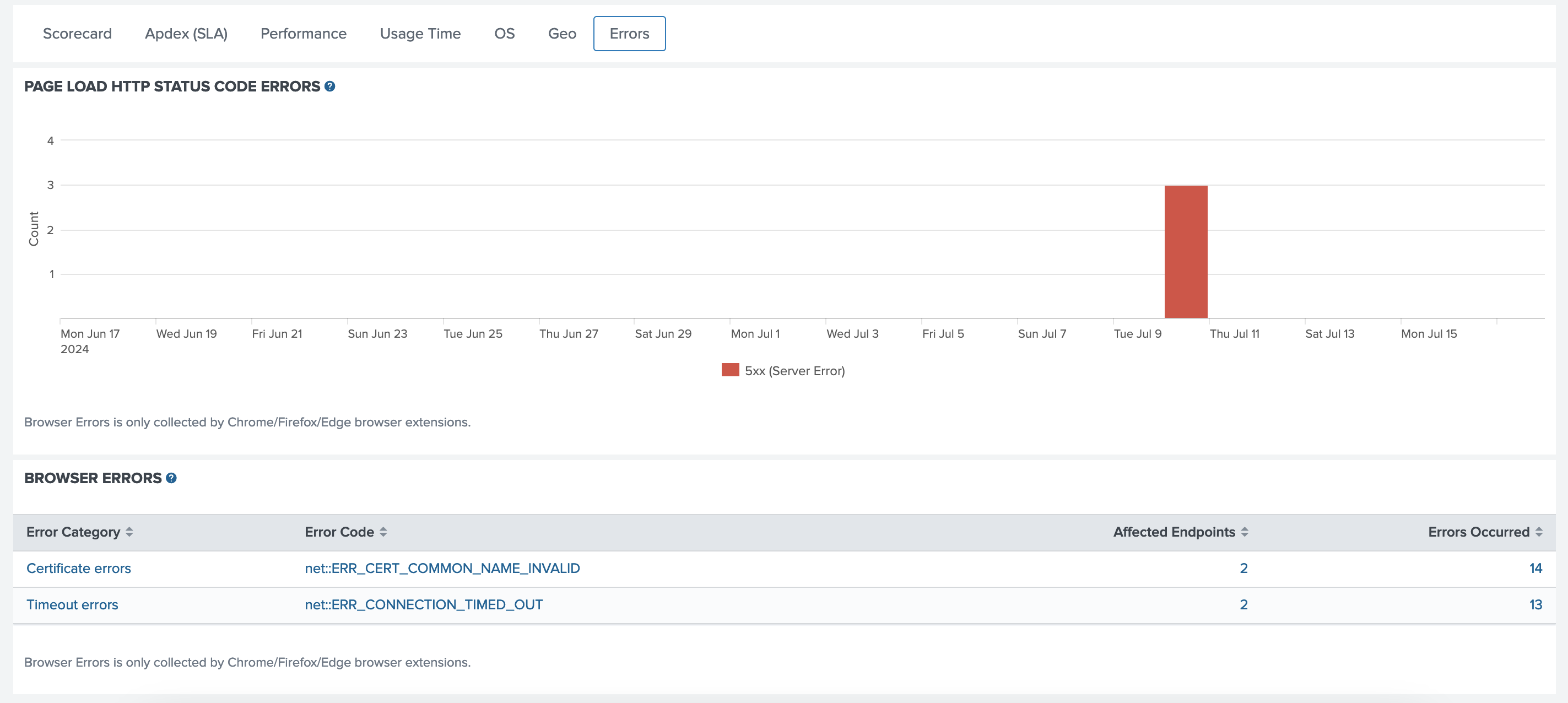 | Page Load 5xx Errors | From 6 errors | 3 to 5 errors | 0 to 2 errors |