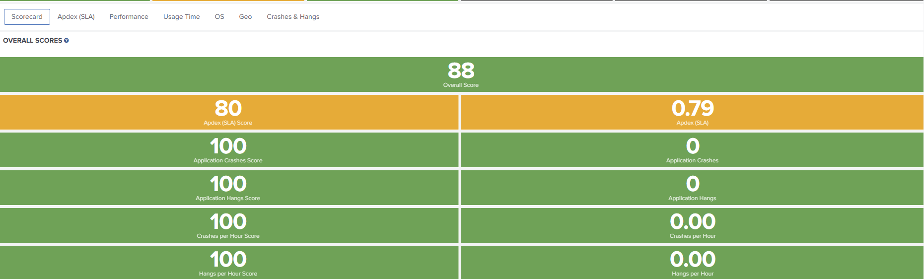 | Application Crashes | From 6 crashes | 3 to 5 crashes | 0 to 2 crashes |