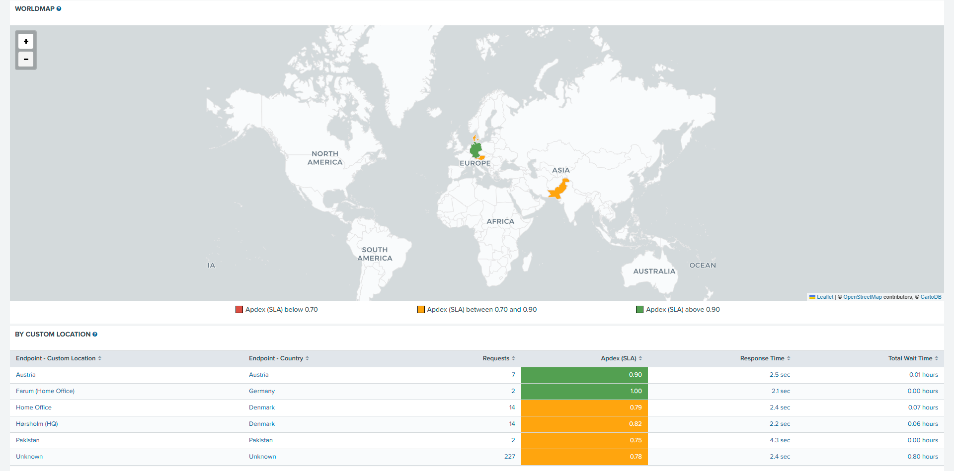 | Apdex (SLA) | 0.00 to 0.70 | 0.71 to 0.85 | 0.86 to 1.00 |