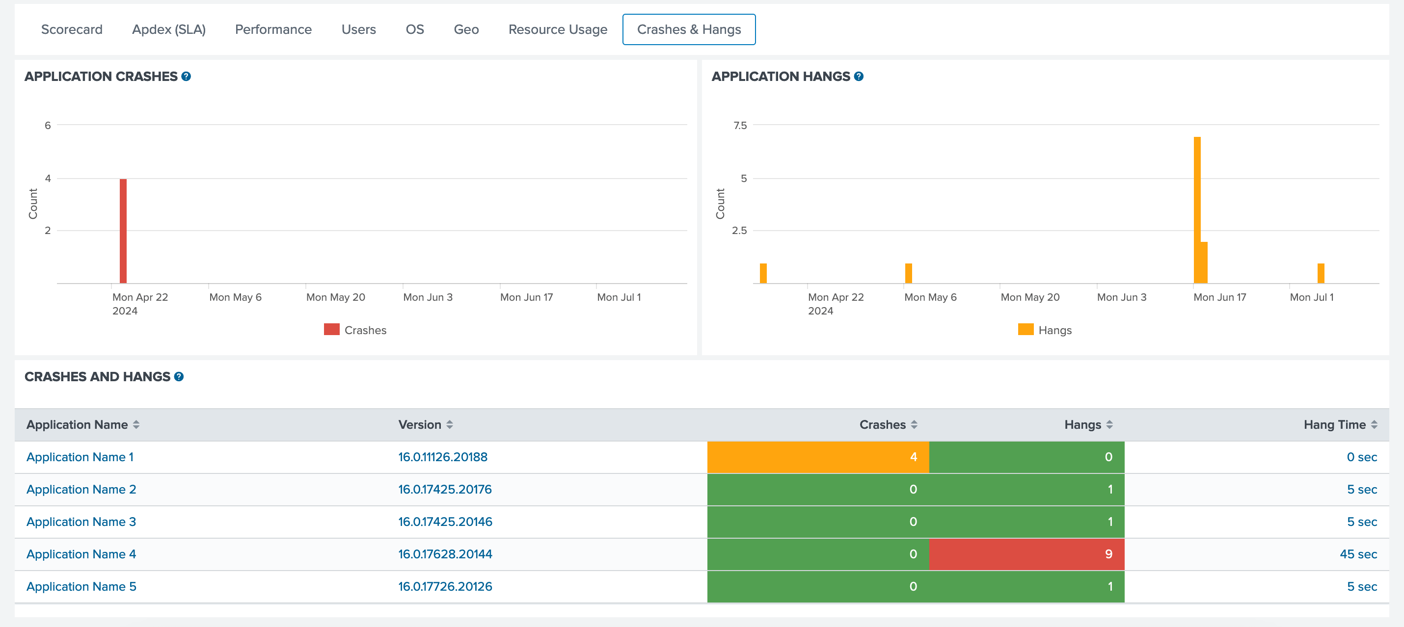 | Application Crashes | From 6 crashes | 3 to 5 crashes | 0 to 2 crashes |