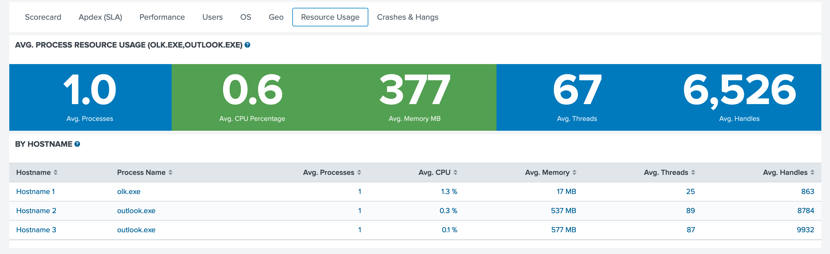 - Hang Time: Total time the desktop application remained frozen or without processing the user's input. Expressed as seconds (sec).