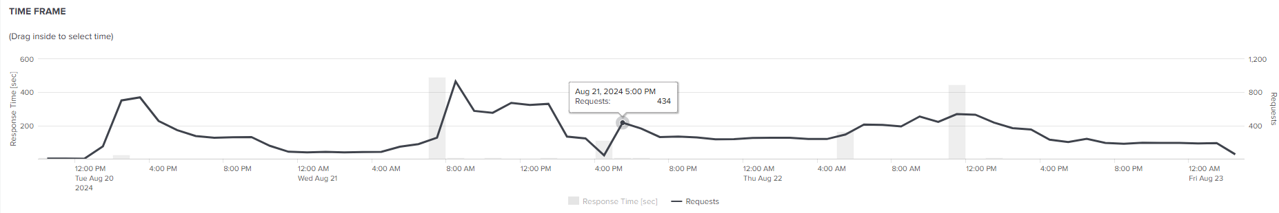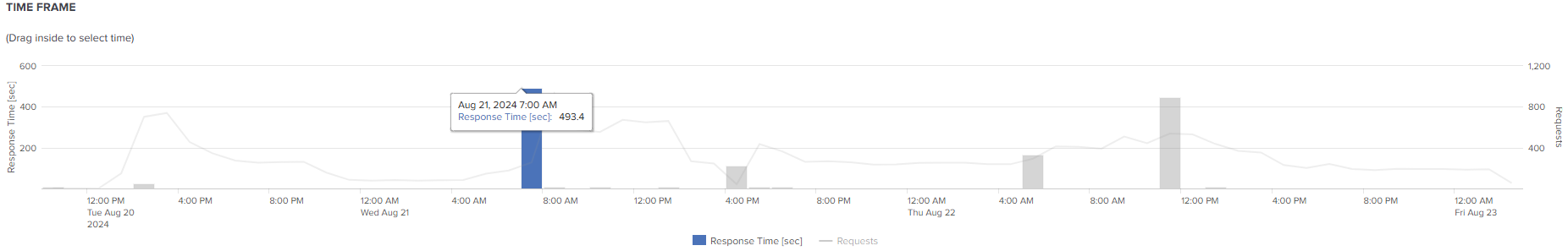 Hover the mouse over a respons bar in the time frame chart to see Avg. Response time and a timestamp: