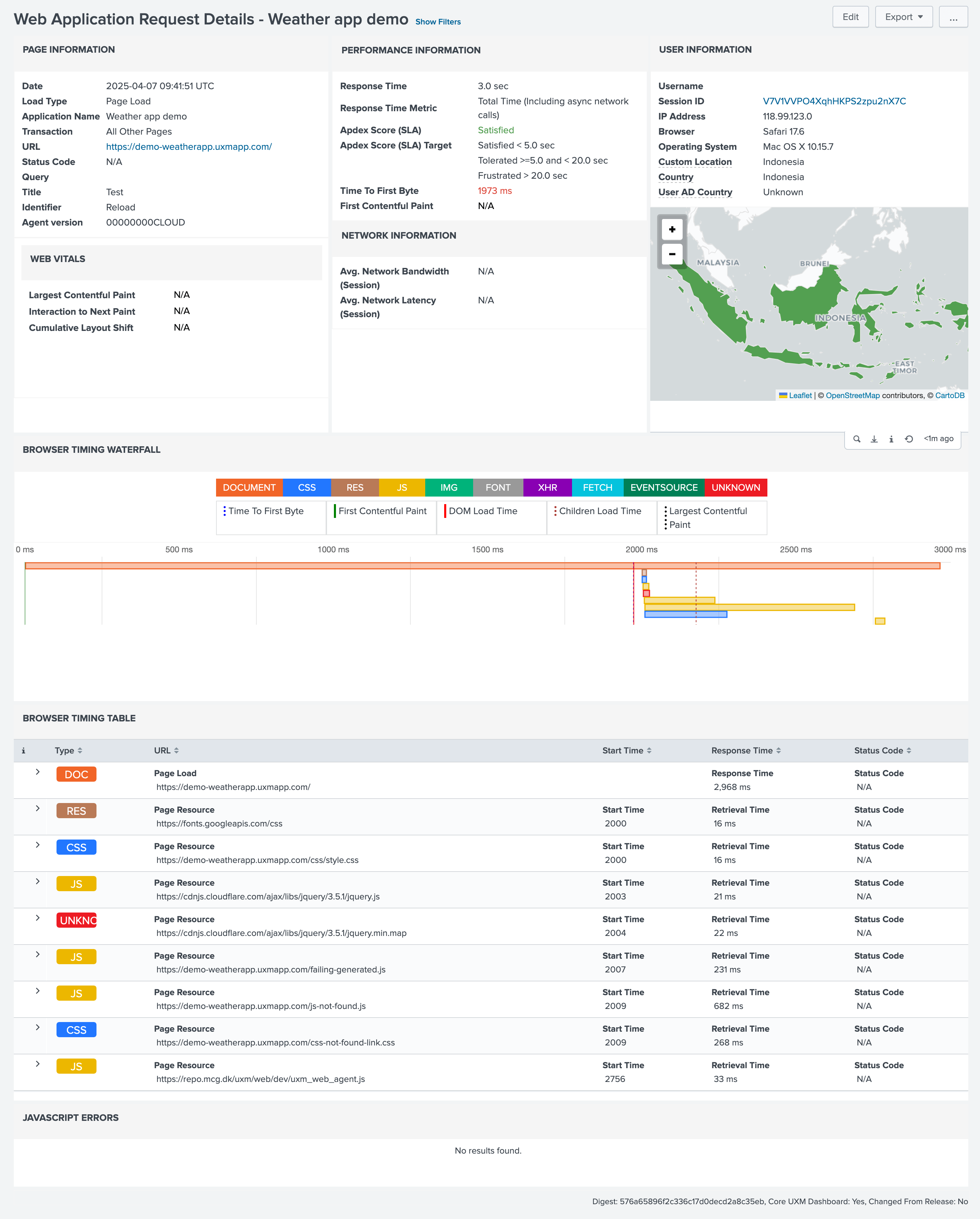 - JavaScript Errors: This section indicates if there are any JavaScript errors found for this request.