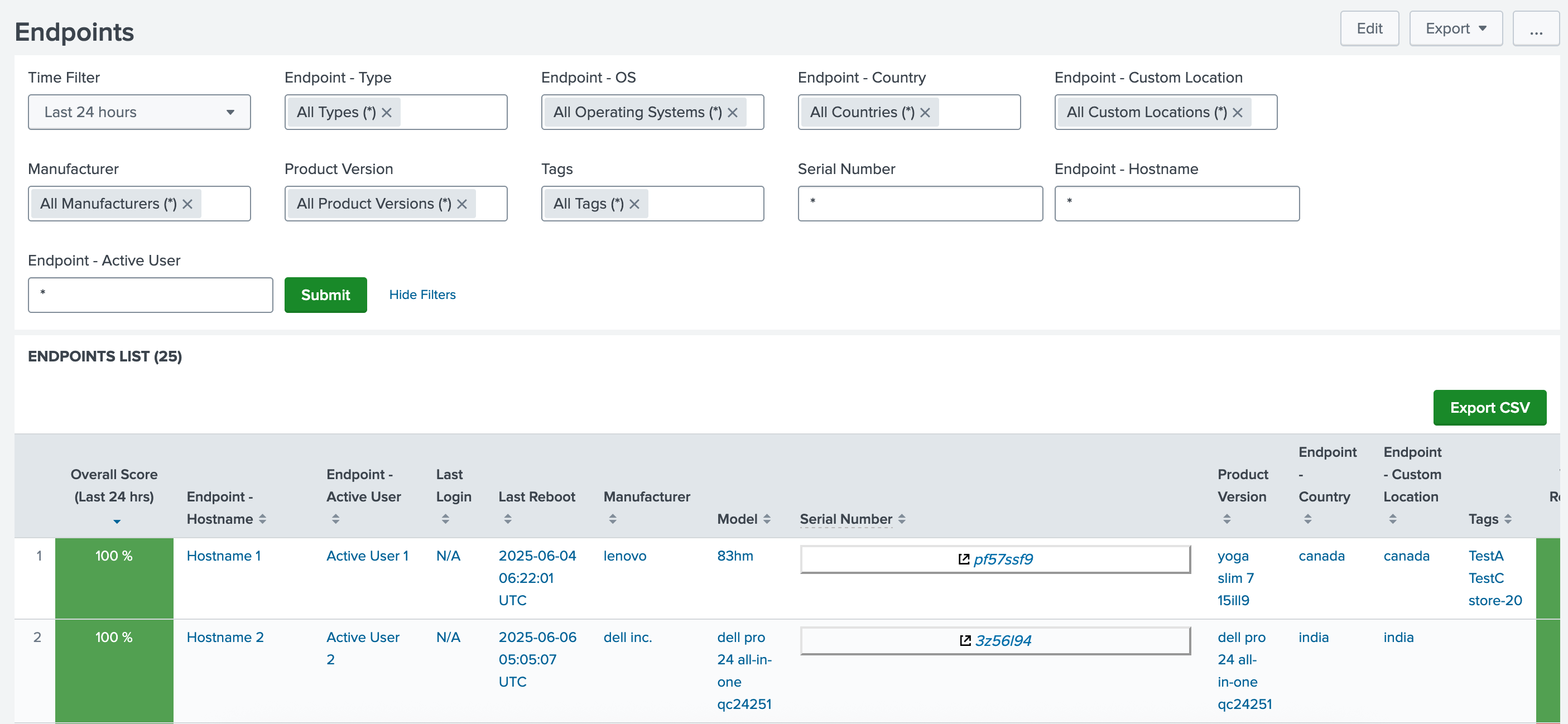 User-defined tags and custom location fields enable efficient filtering and categorization of endpoints, simplifying the management of large and diverse endpoint environments.