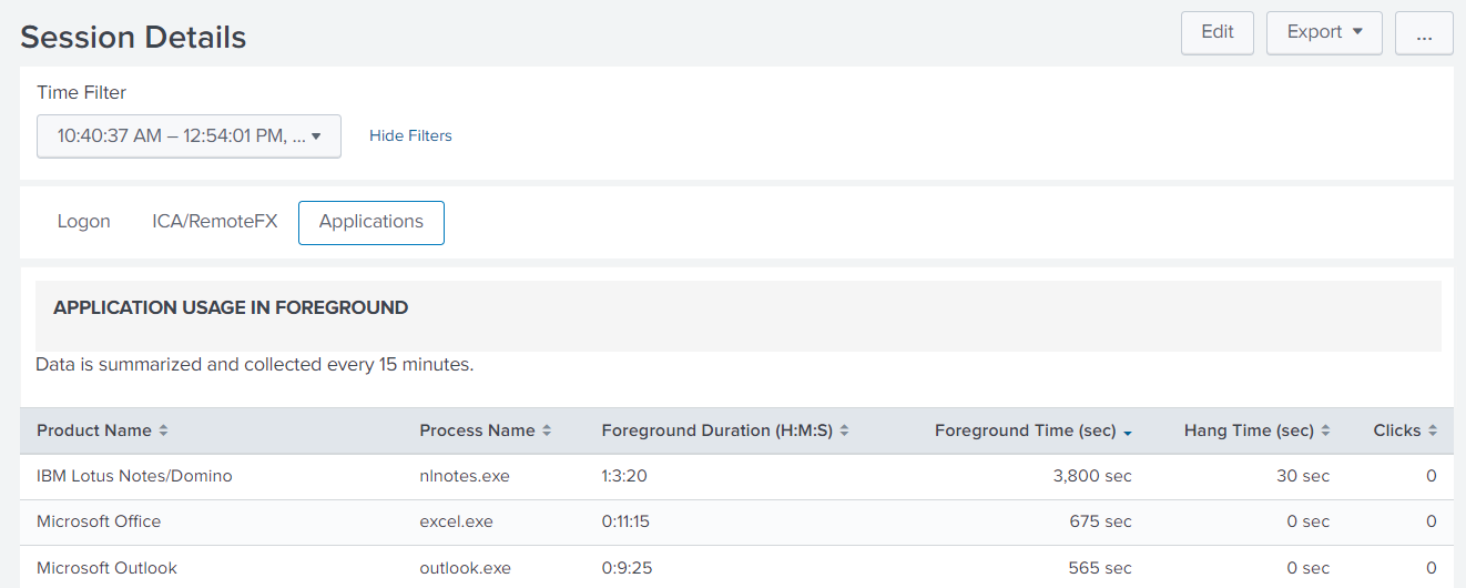 Shows application being used during the logon session, requires that the Process Monitor is enabled.