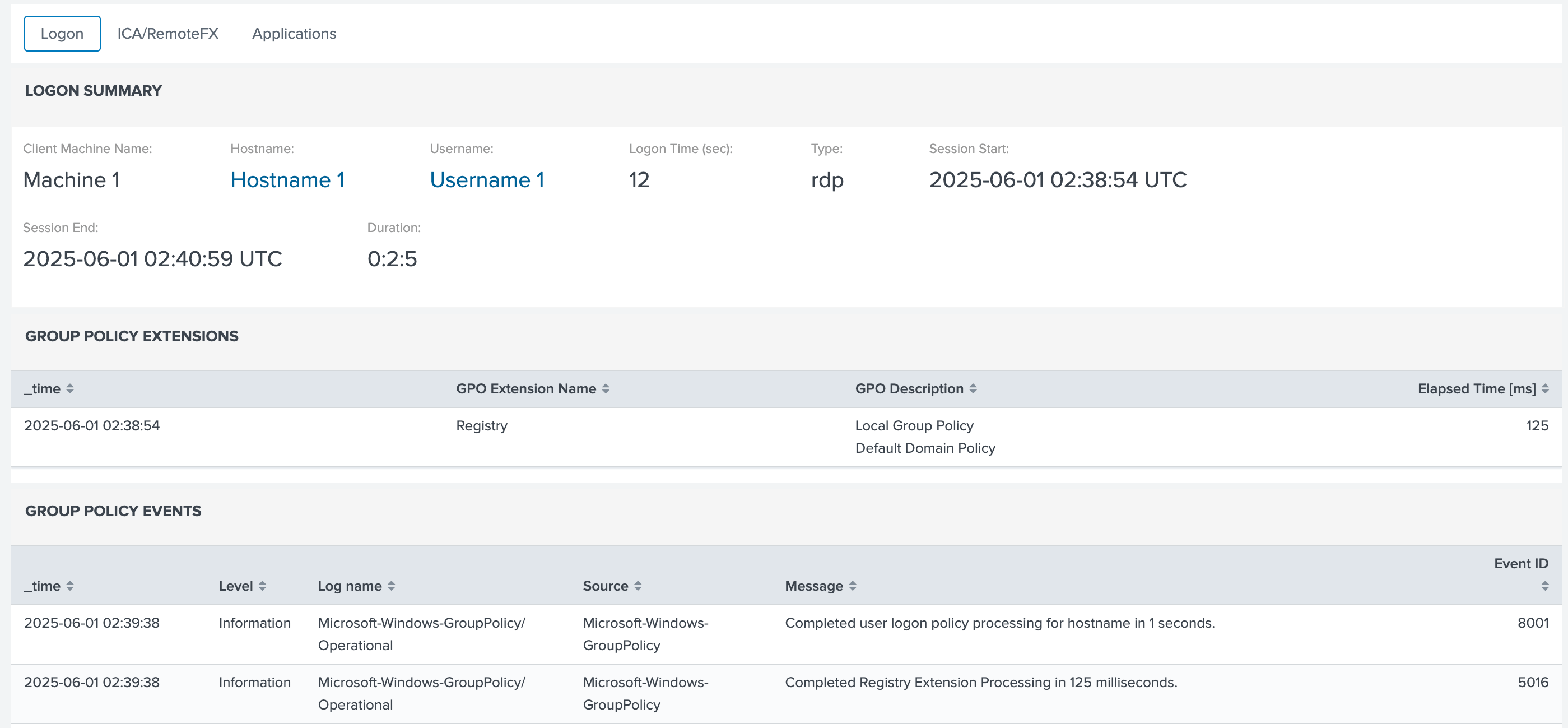 - A Logon Monitor need to be configured to monitor logon/logoff sessions for Virtualization -> Logon Sessions dashboard.