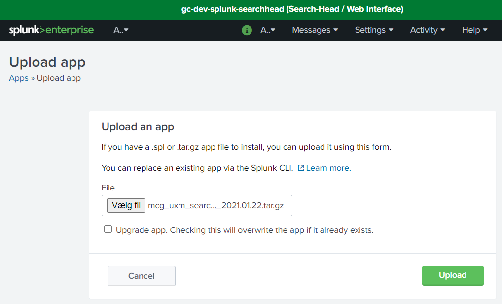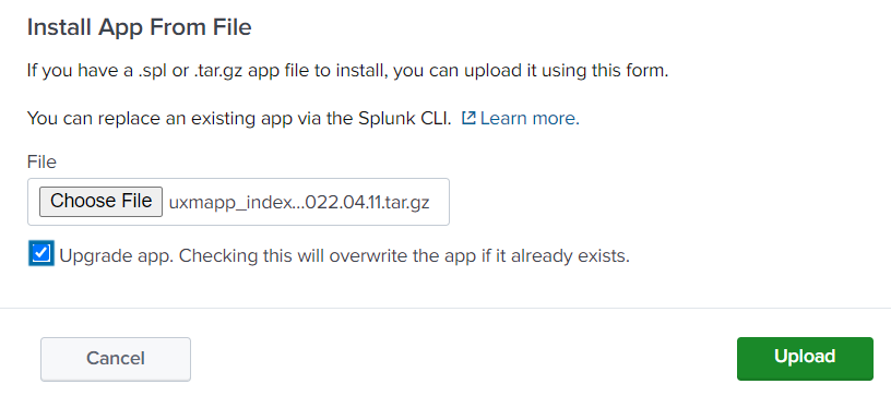 - Search Head app: uxmapp_searchhead_YYYY.MM.DD.tar.gz