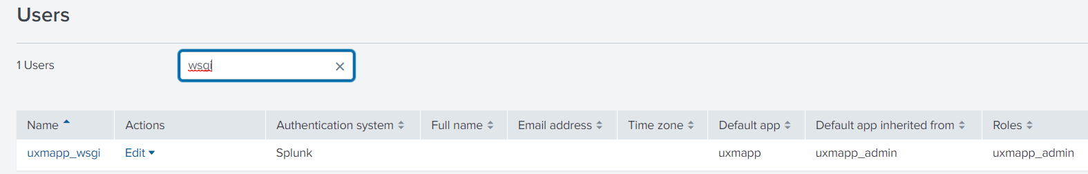 And a user called uxmapp_wsgi, reset the password for the user and disable that password change is required on next login, store the password it will be used later when setting up the Heavy Forwarder.